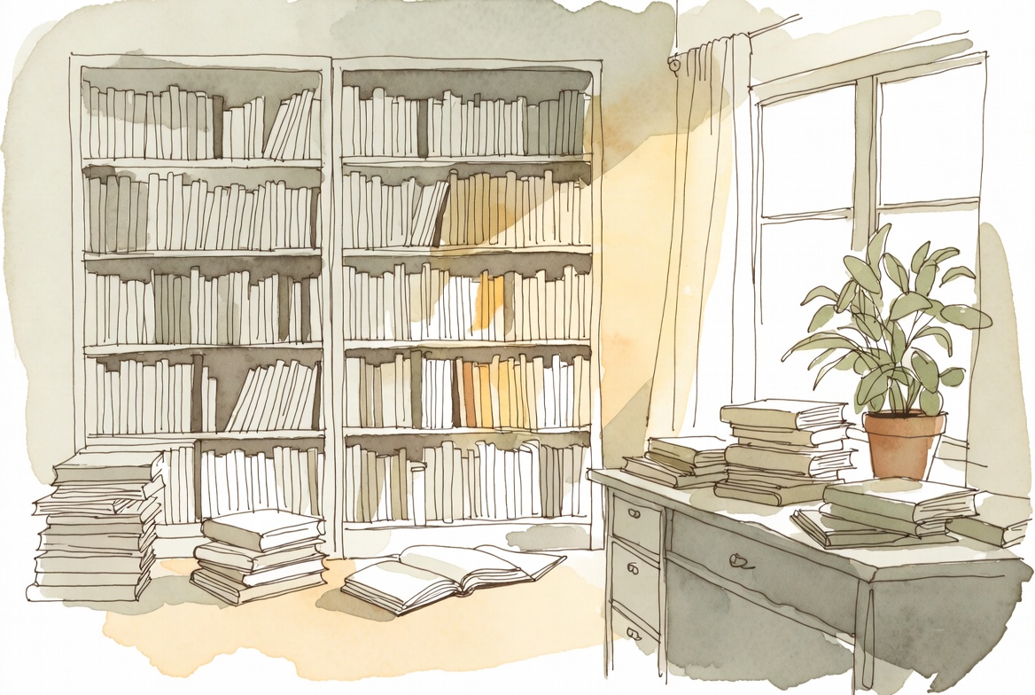 積み上がっていた本の山は、少しずつ姿を消していく。けれども、そこに詰まっていたはずの時間や思考は、別のかたちで確かに残っている。空間は軽くなり、同時に、自分の内側はむしろ整っていく。